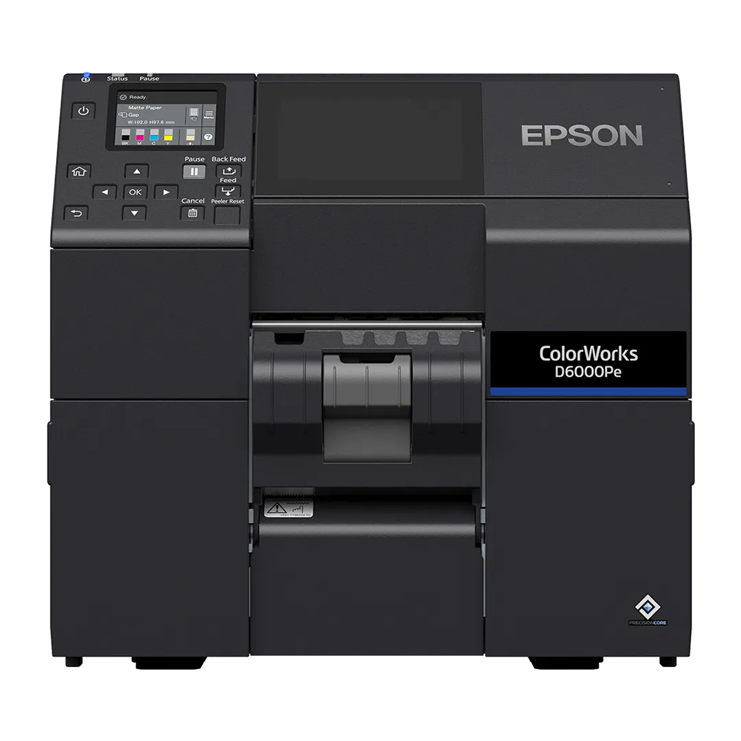 Az Epson ColorWorks D6000Pe modell beépített címkeleválasztóval (peeler) rendelkezik, amelyet kifejezetten a „nyomtasd és ragaszd” (print-and-apply) munkafolyamatokhoz fejlesztettek. A nyomtató automatikusan leválasztja a címkét a hordozóról, ami a 119 mm/s sebességgel kombinálva jelentősen felgyorsítja a gyártósori vagy csomagolási munkát. A könnyű kezelhetőségről a 2,7 colos színes kijelző és az elölről elérhető tekercscsere gondoskodik. A készülék zökkenőmentesen integrálható Windows, MacOS és Linux rendszerekbe, valamint natívan támogatja a legnépszerűbb címketervező szoftvereket (BarTender, NiceLabel), sőt, az informatikai távfelügyeletet is lehetővé teszi.