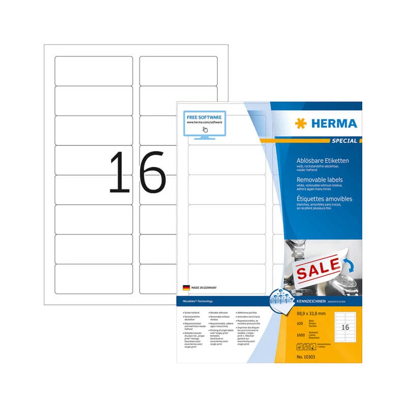 A HERMA 10303 cikkszámú Herma öntapadós etikett címke megbízhatóságának és minőségének köszönhetően több országban is piacvezető termék. A különbőző kiszerelésnek köszönhetően (10, 25, 50, 100 ív/csomag) kis mennyiségű otthoni felhasználásra és nagyobb lélegzetvételű vállalati munkákhoz is kiváló választás. A Herma gyártási technológiák fejlesztése során kiemelt figyelmet fordít az otthoni/irodai nyomtatók védelmére, így egészen biztos nem kell ragasztó kifolyástól/maradványoktól tartania, melyek rátapadhatnak a címkékek nyomtatása során a készülék alkatrészeire, ami meghibásodáshoz vezethet.