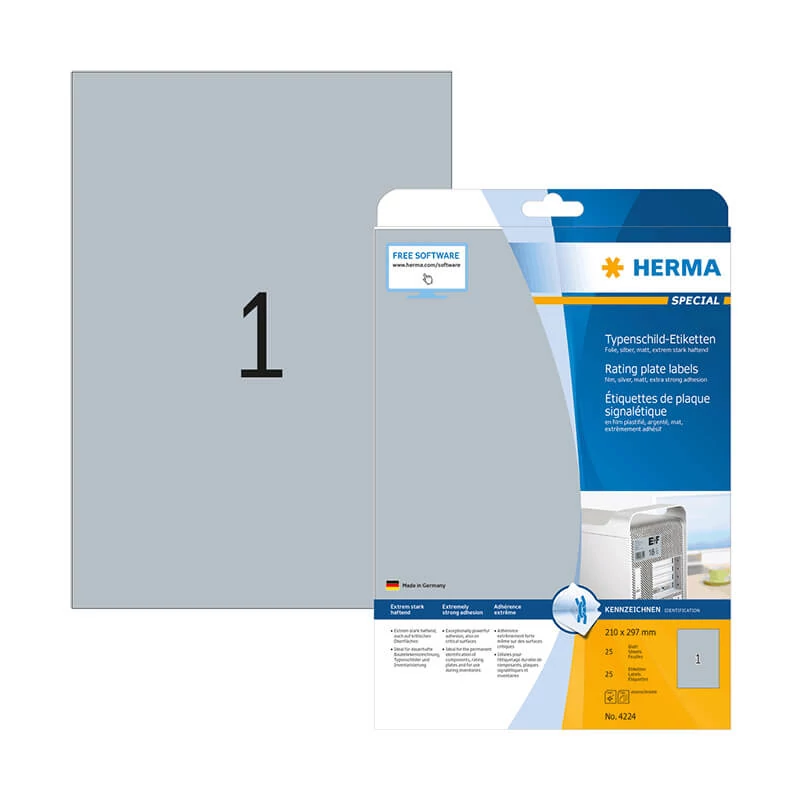 A HERMA 4224 cikkszámú Herma öntapadós etikett címke megbízhatóságának és minőségének köszönhetően több országban is piacvezető termék. A különbőző kiszerelésnek köszönhetően (10, 25, 50, 100 ív/csomag) kis mennyiségű otthoni felhasználásra és nagyobb lélegzetvételű vállalati munkákhoz is kiváló választás. A Herma gyártási technológiák fejlesztése során kiemelt figyelmet fordít az otthoni/irodai nyomtatók védelmére, így egészen biztos nem kell ragasztó kifolyástól/maradványoktól tartania, melyek rátapadhatnak a címkékek nyomtatása során a készülék alkatrészeire, ami meghibásodáshoz vezethet.
