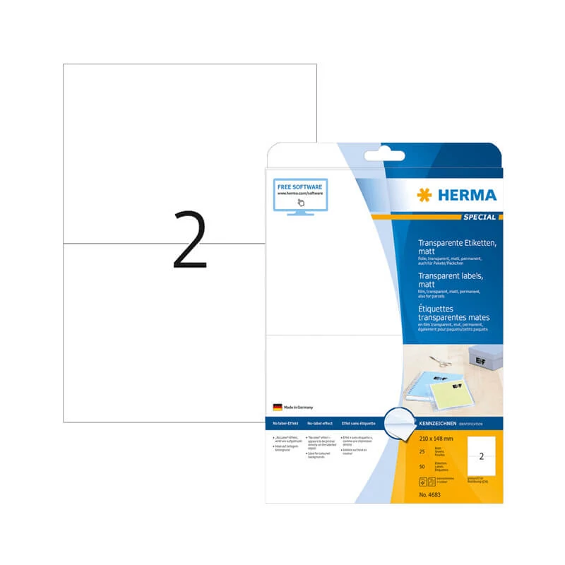 A HERMA 4683 cikkszámú Herma öntapadós etikett címke megbízhatóságának és minőségének köszönhetően több országban is piacvezető termék. A különbőző kiszerelésnek köszönhetően (10, 25, 50, 100 ív/csomag) kis mennyiségű otthoni felhasználásra és nagyobb lélegzetvételű vállalati munkákhoz is kiváló választás. A Herma gyártási technológiák fejlesztése során kiemelt figyelmet fordít az otthoni/irodai nyomtatók védelmére, így egészen biztos nem kell ragasztó kifolyástól/maradványoktól tartania, melyek rátapadhatnak a címkékek nyomtatása során a készülék alkatrészeire, ami meghibásodáshoz vezethet.