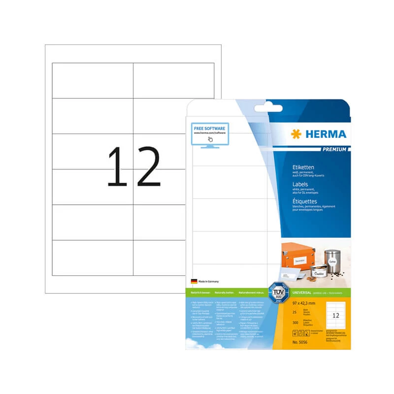 A HERMA 5046 cikkszámú Herma öntapadós etikett címke megbízhatóságának és minőségének köszönhetően több országban is piacvezető termék. A különbőző kiszerelésnek köszönhetően (10, 25, 50, 100 ív/csomag) kis mennyiségű otthoni felhasználásra és nagyobb lélegzetvételű vállalati munkákhoz is kiváló választás. A Herma gyártási technológiák fejlesztése során kiemelt figyelmet fordít az otthoni/irodai nyomtatók védelmére, így egészen biztos nem kell ragasztó kifolyástól/maradványoktól tartania, melyek rátapadhatnak a címkékek nyomtatása során a készülék alkatrészeire, ami meghibásodáshoz vezethet.