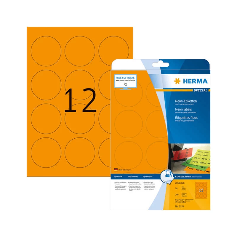 A HERMA 5153 cikkszámú Herma öntapadós etikett címke megbízhatóságának és minőségének köszönhetően több országban is piacvezető termék. A különbőző kiszerelésnek köszönhetően (10, 25, 50, 100 ív/csomag) kis mennyiségű otthoni felhasználásra és nagyobb lélegzetvételű vállalati munkákhoz is kiváló választás. A Herma gyártási technológiák fejlesztése során kiemelt figyelmet fordít az otthoni/irodai nyomtatók védelmére, így egészen biztos nem kell ragasztó kifolyástól/maradványoktól tartania, melyek rátapadhatnak a címkékek nyomtatása során a készülék alkatrészeire, ami meghibásodáshoz vezethet.