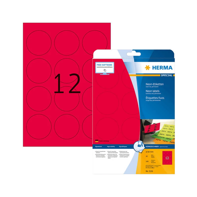 A HERMA 5156 cikkszámú Herma öntapadós etikett címke megbízhatóságának és minőségének köszönhetően több országban is piacvezető termék. A különbőző kiszerelésnek köszönhetően (10, 25, 50, 100 ív/csomag) kis mennyiségű otthoni felhasználásra és nagyobb lélegzetvételű vállalati munkákhoz is kiváló választás. A Herma gyártási technológiák fejlesztése során kiemelt figyelmet fordít az otthoni/irodai nyomtatók védelmére, így egészen biztos nem kell ragasztó kifolyástól/maradványoktól tartania, melyek rátapadhatnak a címkékek nyomtatása során a készülék alkatrészeire, ami meghibásodáshoz vezethet.