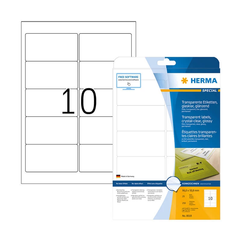 A HERMA 8018 cikkszámú Herma öntapadós etikett címke megbízhatóságának és minőségének köszönhetően több országban is piacvezető termék. A különbőző kiszerelésnek köszönhetően (10, 25, 50, 100 ív/csomag) kis mennyiségű otthoni felhasználásra és nagyobb lélegzetvételű vállalati munkákhoz is kiváló választás. A Herma gyártási technológiák fejlesztése során kiemelt figyelmet fordít az otthoni/irodai nyomtatók védelmére, így egészen biztos nem kell ragasztó kifolyástól/maradványoktól tartania, melyek rátapadhatnak a címkékek nyomtatása során a készülék alkatrészeire, ami meghibásodáshoz vezethet.