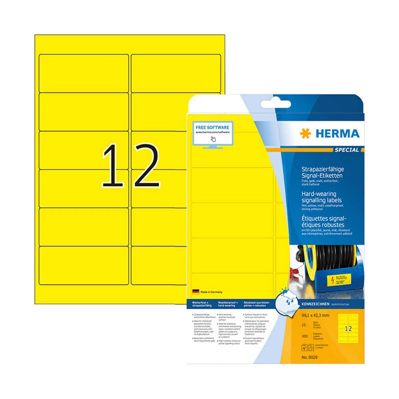 A HERMA 8029 cikkszámú Herma öntapadós etikett címke megbízhatóságának és minőségének köszönhetően több országban is piacvezető termék. A különbőző kiszerelésnek köszönhetően (10, 25, 50, 100 ív/csomag) kis mennyiségű otthoni felhasználásra és nagyobb lélegzetvételű vállalati munkákhoz is kiváló választás. A Herma gyártási technológiák fejlesztése során kiemelt figyelmet fordít az otthoni/irodai nyomtatók védelmére, így egészen biztos nem kell ragasztó kifolyástól/maradványoktól tartania, melyek rátapadhatnak a címkékek nyomtatása során a készülék alkatrészeire, ami meghibásodáshoz vezethet.