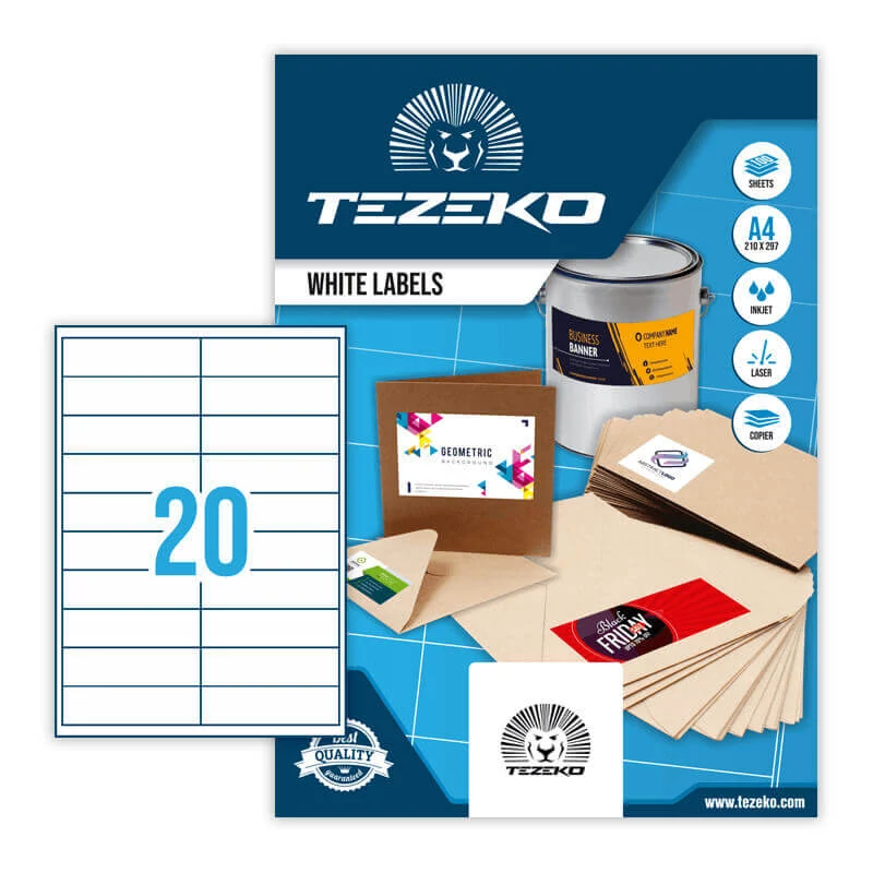 A Tezeko íves etikett címke használatával kiváló minőségű nyomtatási eredmény érhető el, mely 100%-ban kompatibilis minden típusú lézer vagy tintasugaras nyomtatóval és fénymásolóval. A gyártó kiemelt figyelmet fordít az otthoni/irodai nyomtatók védelmére, így egészen biztos nem kell ragasztó kifolyástól/maradványoktól tartania, melyek rátapadhatnak a felhasználás során a készülék alkatrészeire.