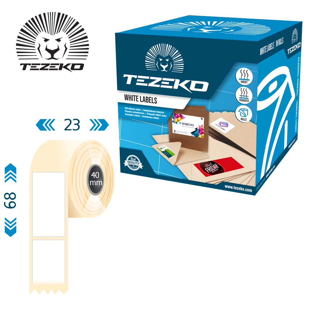A 23 * 68 mm, műanyag etikett címke (1000 címke/tekercs) termál-transzfer eljárással nyomtatható alapanyag. A M0230006800-001 cikkszámú műanyag etikett címke nyomtatásához RESIN festékszalag szükséges, így nagyjából 30-40 %-al magasabb a nyomtatási költsége, mint a normál papír alapanyagnak. A nyomtatási folyamat során a nyomtatófej által kiadott hő hatására a festékszalagról a tinta pigmentek a címke felületére kerülnek.