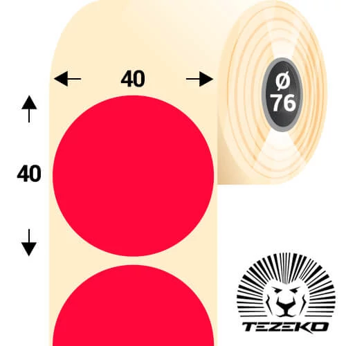 A 40 mm-es kör, papír címke, fluo piros színű (5500 címke/tekercs) termál-transzfer eljárással nyomtatható anyag, melyhez WAX festékszalag szükséges. A P0400004000-031 cikkszámú tekercses öntapadó etikett címke felhasználása jellemzően száraz körülmények között történik (kültéri hatásoknak nem, vagy csak korlátozottan áll ellen), széles hőmérsékleti tartományban használható. A nyomtatott információkat több éven kerszül megőrzi, ellenáll a súrlódásnak és a tűző napnak.